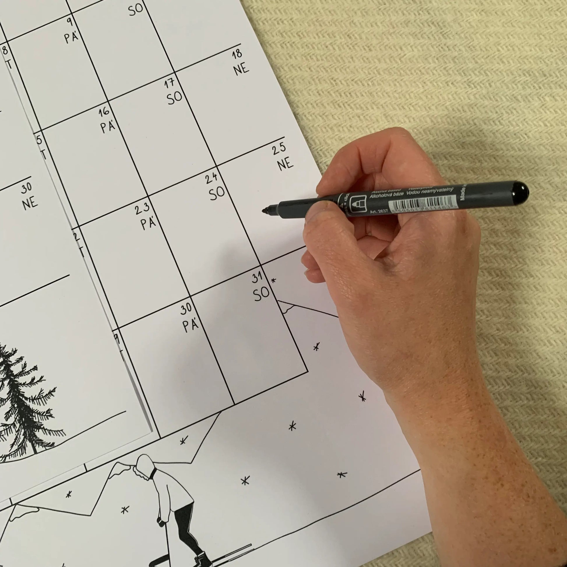 Pevný papír (250 g/m²), na který se dobře píše. Přehledné rozvržení, svátky a významné dny, minimalistický design. Rozměr A3 (297 x 420 mm).