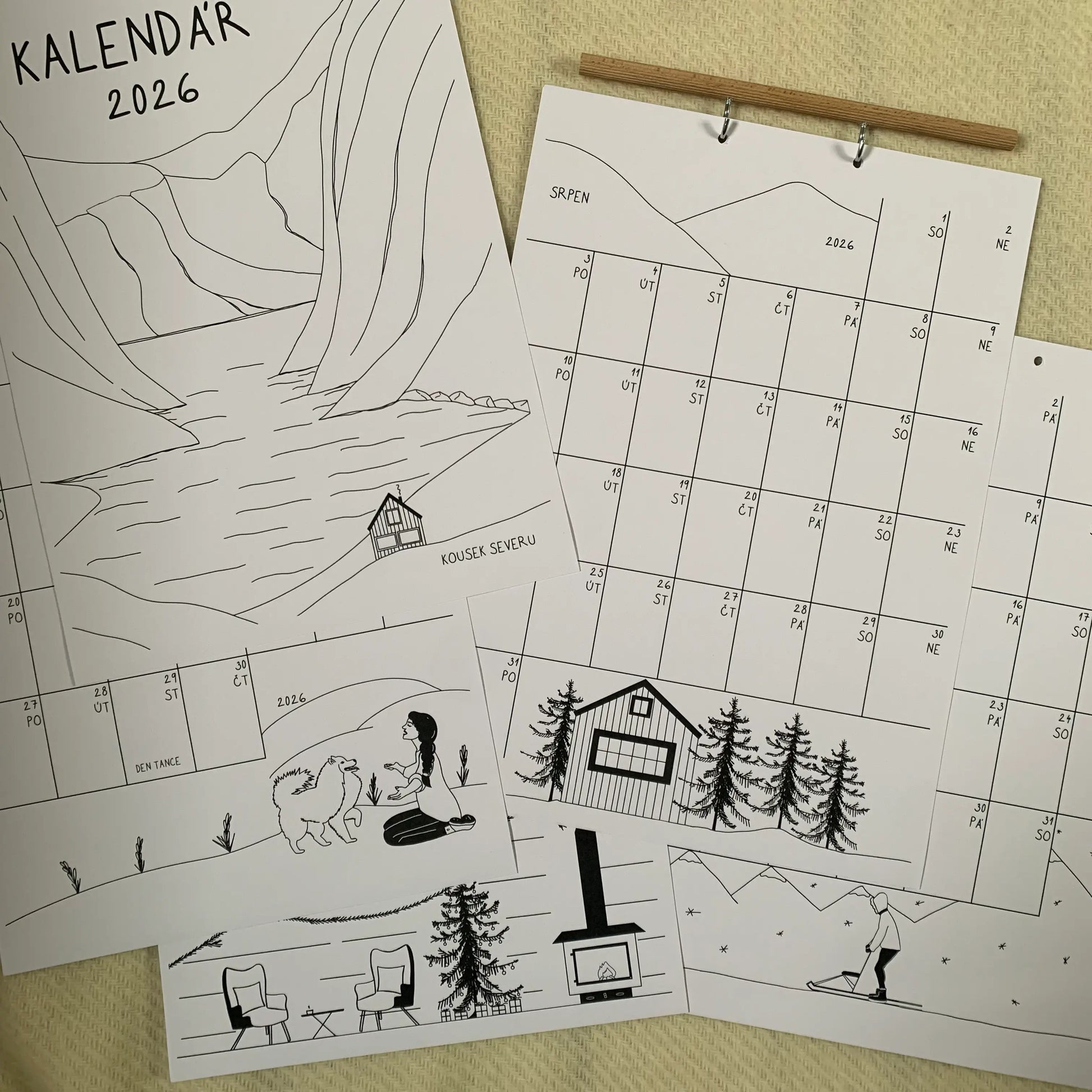 Ručně ilustrovaný nástěnný kalendář inspirovaný norskou přírodou – každý měsíc originální kresba, která navodí atmosféru Severu.